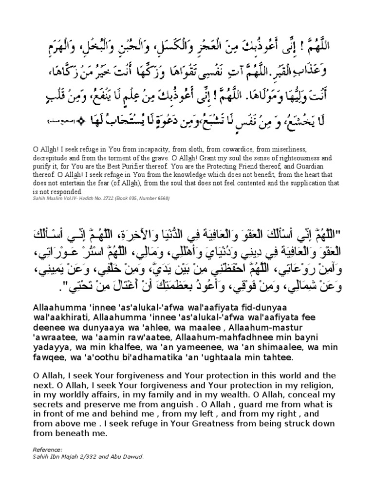 اللهم إنا نعوذ بك من علم لا ينفع ومن قلب لا يخشع ومن دعاء لا ي سمع ومن نفس لا تشبع