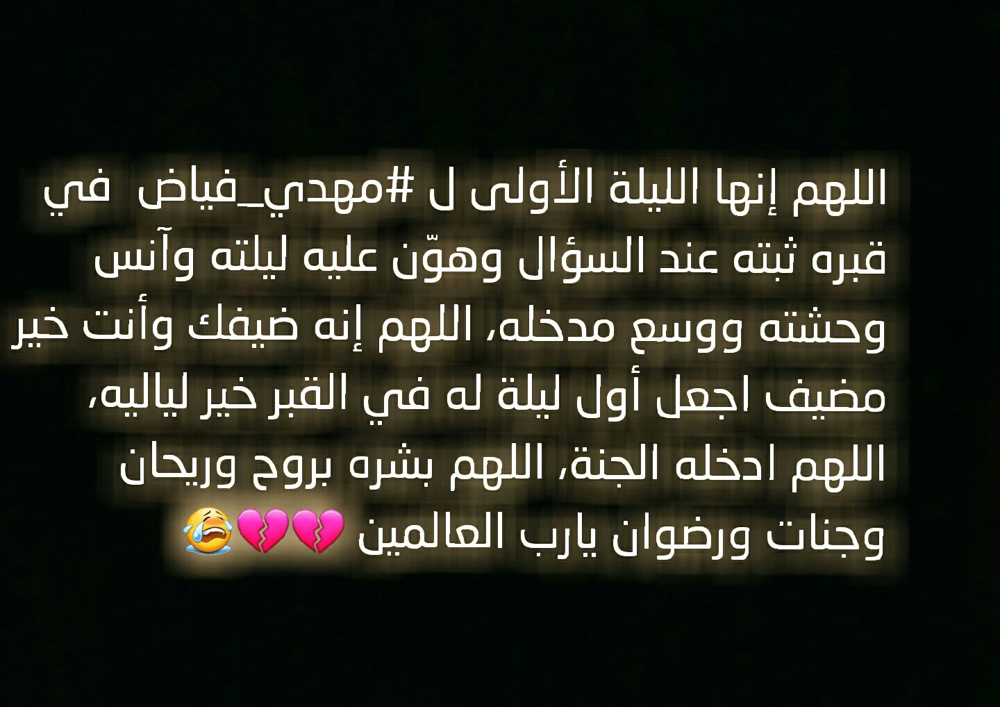 أسرار فياض Ar Twitter اللهم إنها الليله الأولى لـ مهدي علي فياض في قبره ف يارب هون عليه ليلته وآنس وحشته واجعل أول ليله له في القبر خير لياليه وارحمه يالله Https T Co Yzu6msxqe5