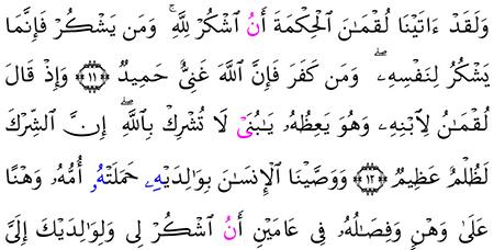 الشطر الثاني من سورة لقمان الآية 12 إلى 21 في رحاب التربية الإسلامية Alloschool