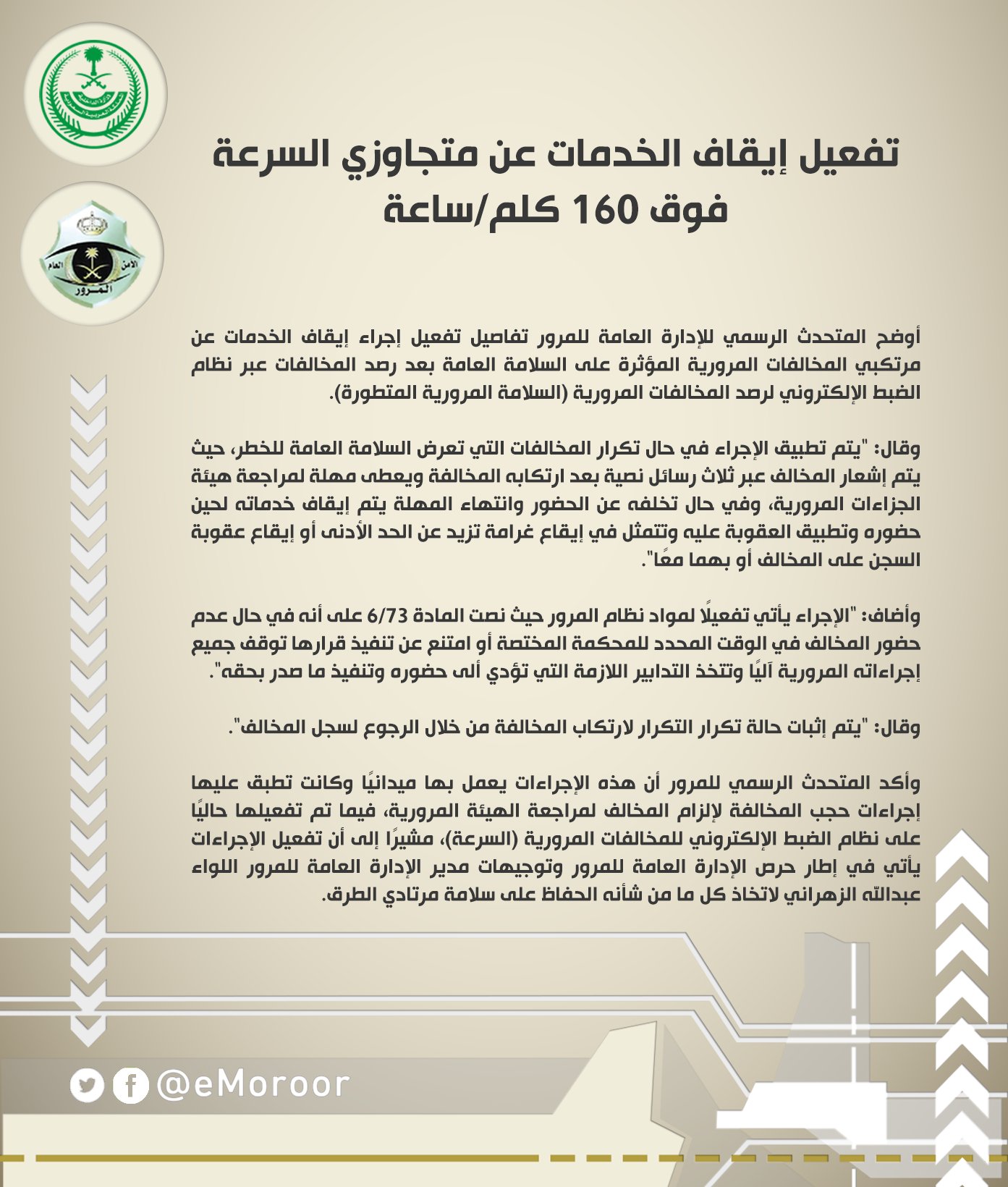 المرور السعودي Na Twitteru تفعيل إيقاف الخدمات عن متجاوزي السرعة فوق 160 كلم ساعة المرور السعودي Https T Co O25ctsj5uq